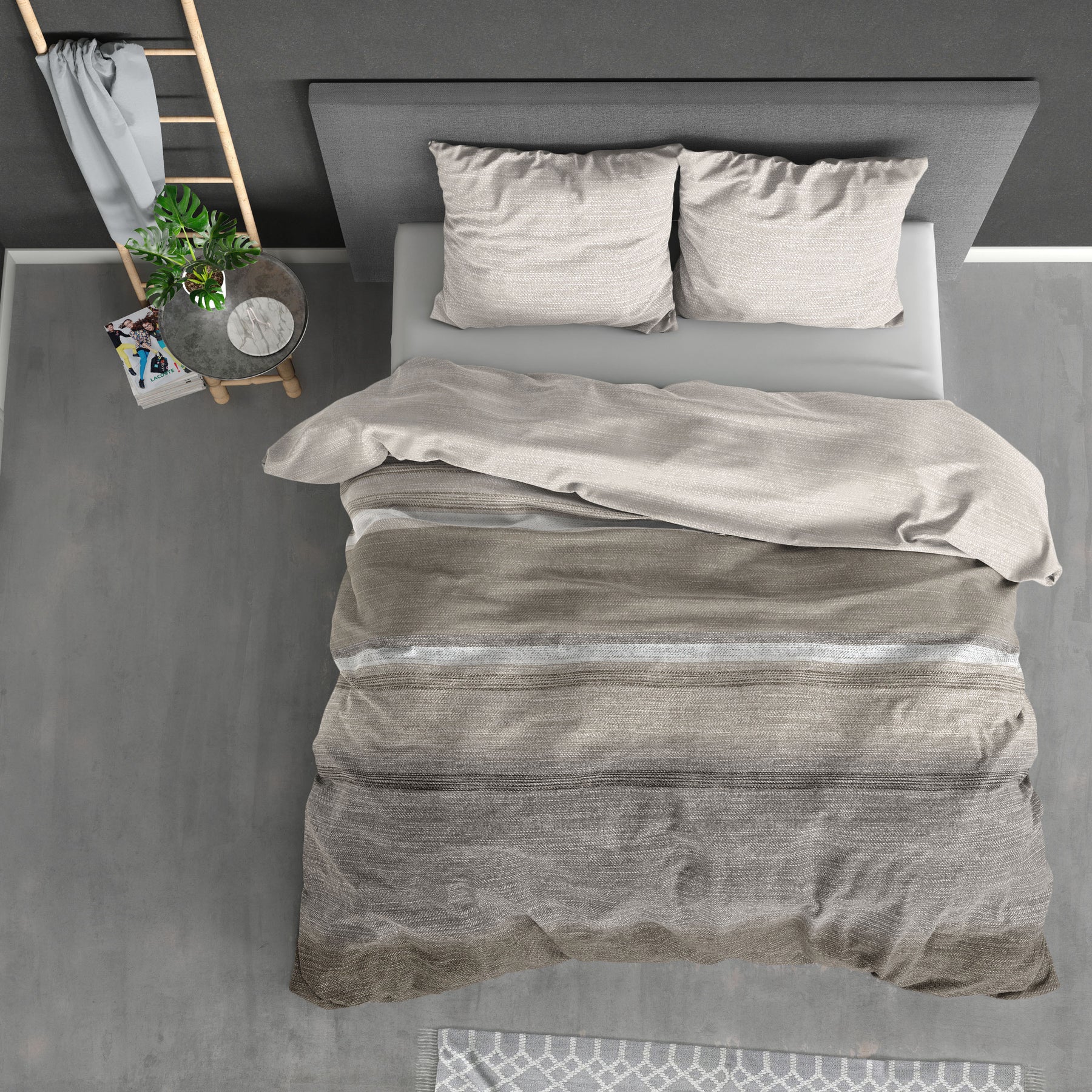 Stone Stripe Dekbedovertrek Flanel - Taupe