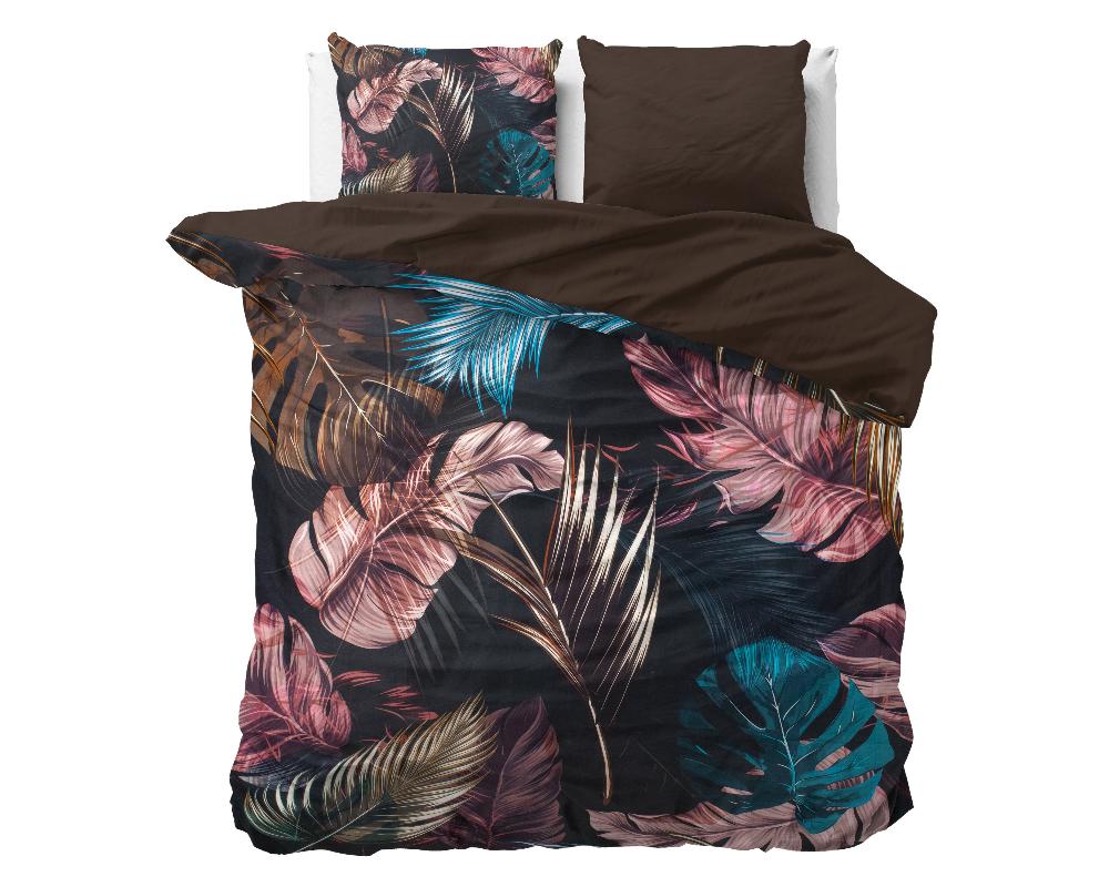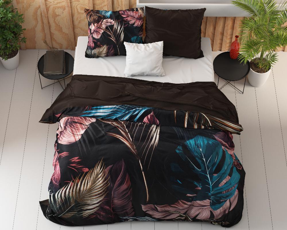 De luxe print van het dekbedovertrek Isabella is een plaatje voor in de slaapkamer. Tover je interieur om tot een luxe hotelroom met het Dreamhouse Bedding Isabella dekbedovertrek. De zwarte ondergrond laat de gekleurde bladeren extra mooi schitteren. Roze en blauwe palmbladeren sieren het dessin. De achterzijde is effen van kleur.